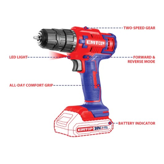 EMTOP Lithium-Ion Cordless Drill 45Nm